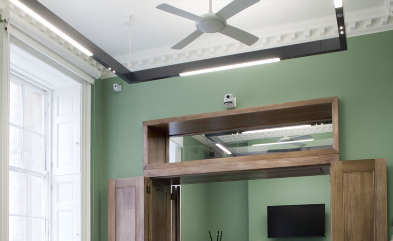 To achieve a BREEAM rating of “Very Good” in a Grade 1 listed building To make modifications to accommodate the demanding servicing requirements, using the existing fabric to achieve a mixed mode ventilation system which responds to the technical requirements but works with the limitations of the building.